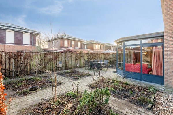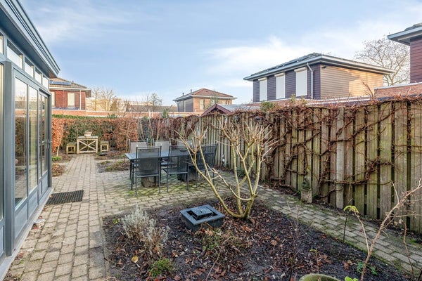 Jullie bourgondische gezelligheid past perfect bij de riante tuin. In de achtertuin kunnen jullie heerlijk barbecueën en genieten van het buitenleven. De achtertuin is voorzien van diverse zitplekjes, plantenborders en houthok (handig geplaatst onder de dakverlenging).