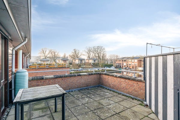 Middels de vaste trap op de eerste verdieping bereiken jullie de overloop op de tweede verdieping. De overloop is afgewerkt met een zeilvloer, spachtelputz wanden en een spuitwerk plafond. De overloop biedt toegang tot het dakterras, de derde slaapkamer en kast met CV-Ketel (Nefit, 2016) en aansluiting voor de wasmachine en droger. Voorzien van zonwering handmatig te bedienen vanaf het balkon.