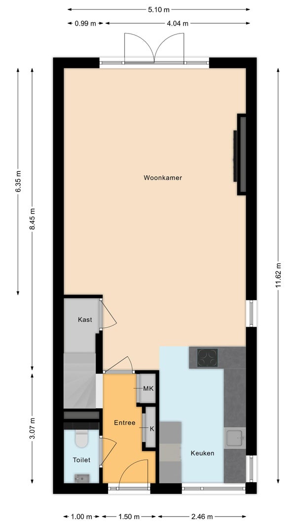 - De tussenwoning heeft een woonoppervlakte van 142 m² en beschikt over 5 kamers, waarvan 4 slaapkamers;