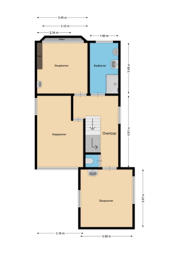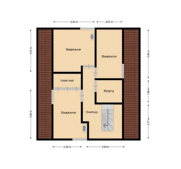 - De tussenwoning heeft een woonoppervlakte van 170 m² en beschikt over 7 kamers, waarvan 6 slaapkamers;