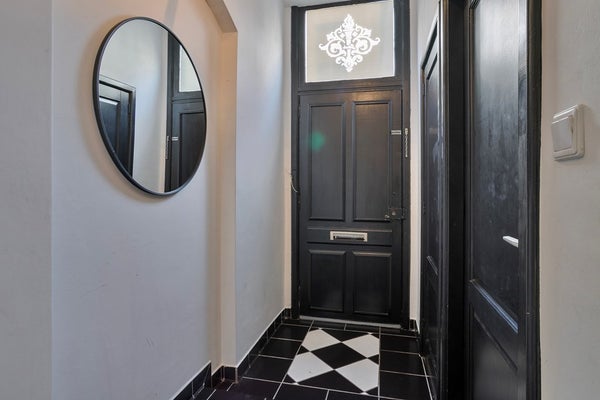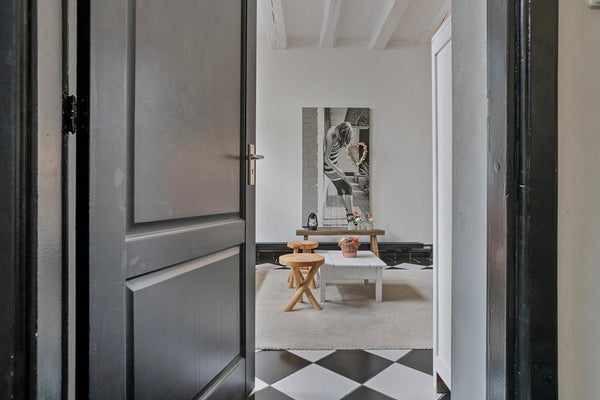 Na een heerlijke dag winkelen en genieten op het terras, wandelen jullie door de sfeervolle straten van Bergen op Zoom richting dit unieke herenhuis en lopen naar binnen. De entree is afgewerkt met een betegelde vloer, gestucte wanden en een gestuct plafond. De entree biedt toegang tot de woonkamer, meterkast en eerste verdieping middels een vaste trapopgang.