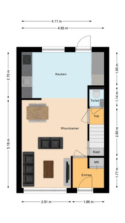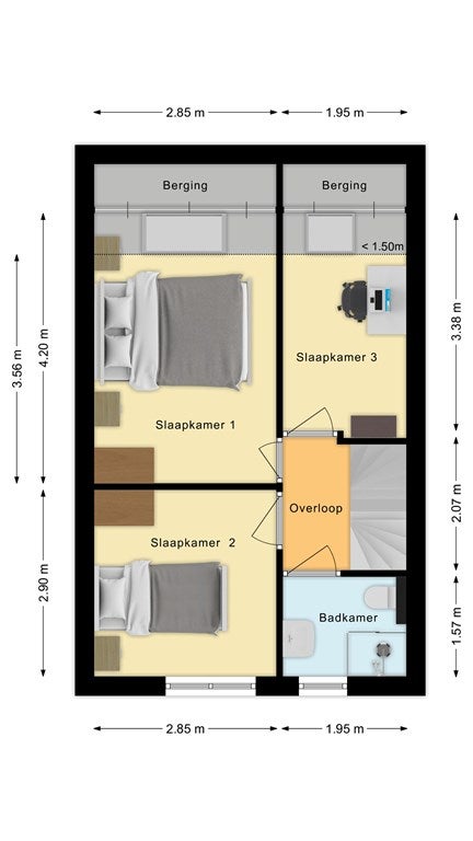 - De hoekwoning heeft een woonoppervlakte van 81 m² en beschikt over 5 kamers, waarvan 4 slaapkamers;