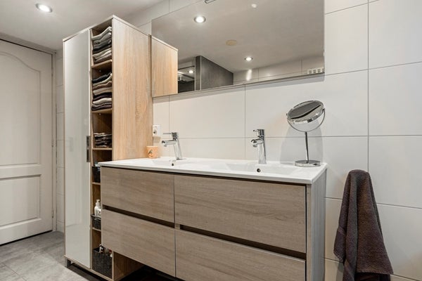 Vergeet oude, gedateerde badkamers. Hier trek je je ochtendritueel naar een hoger level. De moderne badkamer is slim ingedeeld en strak afgewerkt: royale douchecabine met regendouche, ligbad, fris tegelwerk en een fijne wastafelmeubel maken het compleet. Je hoeft alleen nog maar handdoeken en verzorgingsspullen mee te nemen. Extra praktisch is het aanwezige toilet op de verdiepingsvloer, wat je vaak bij dit soort woningen niet ziet.