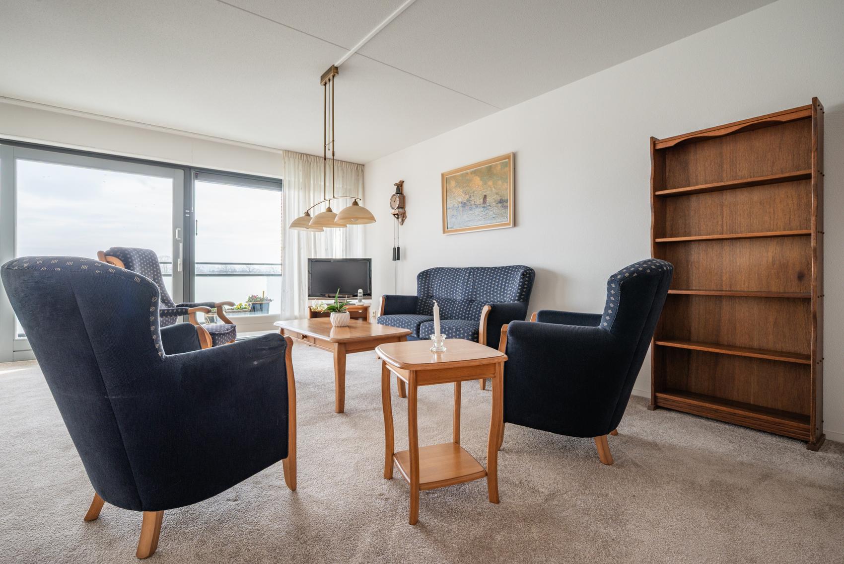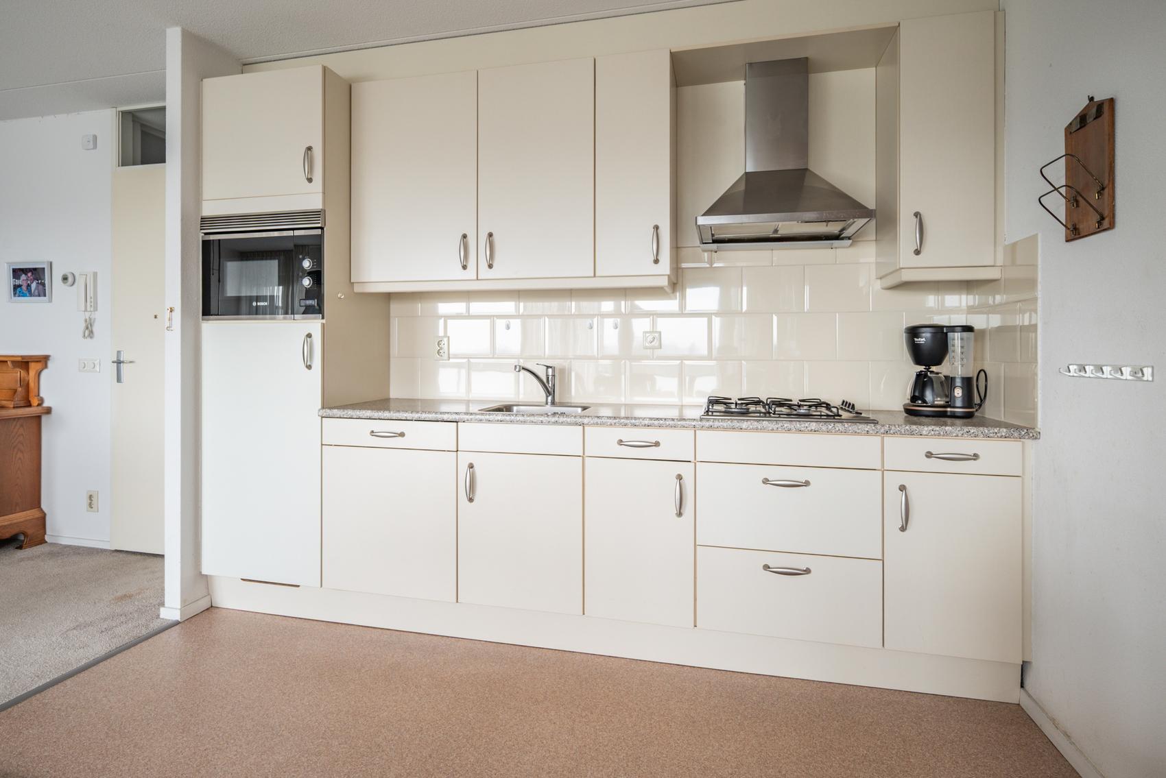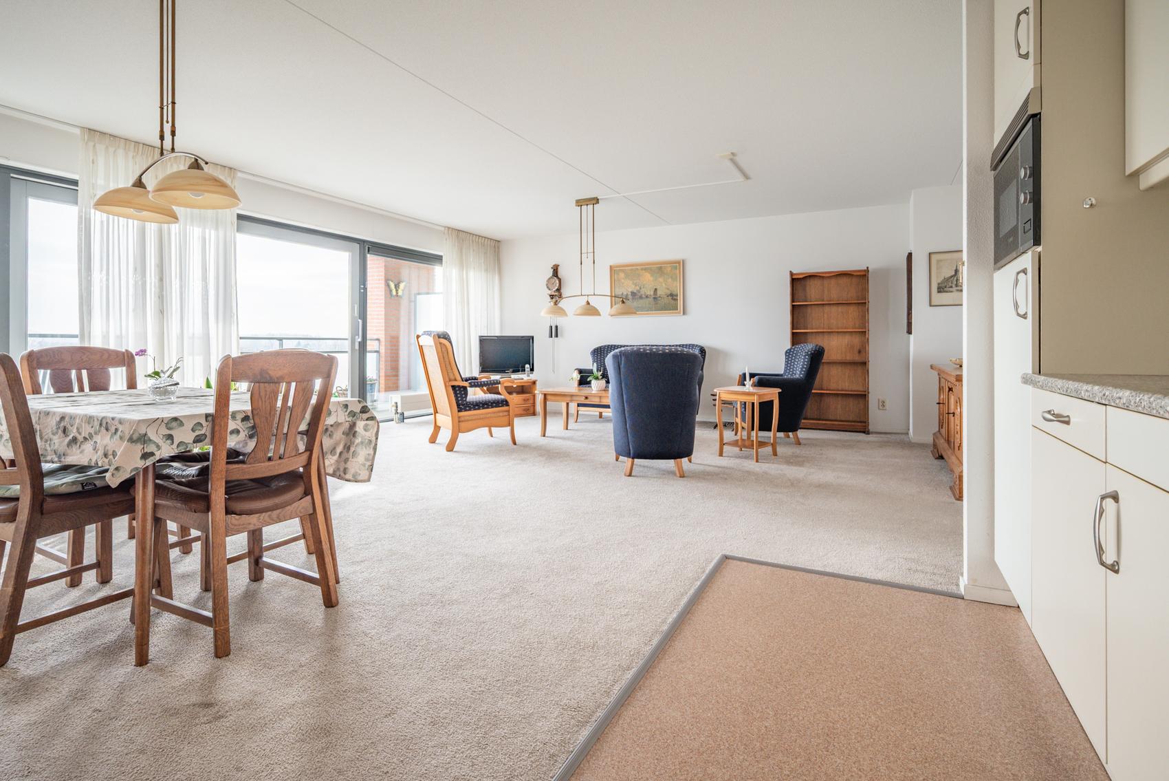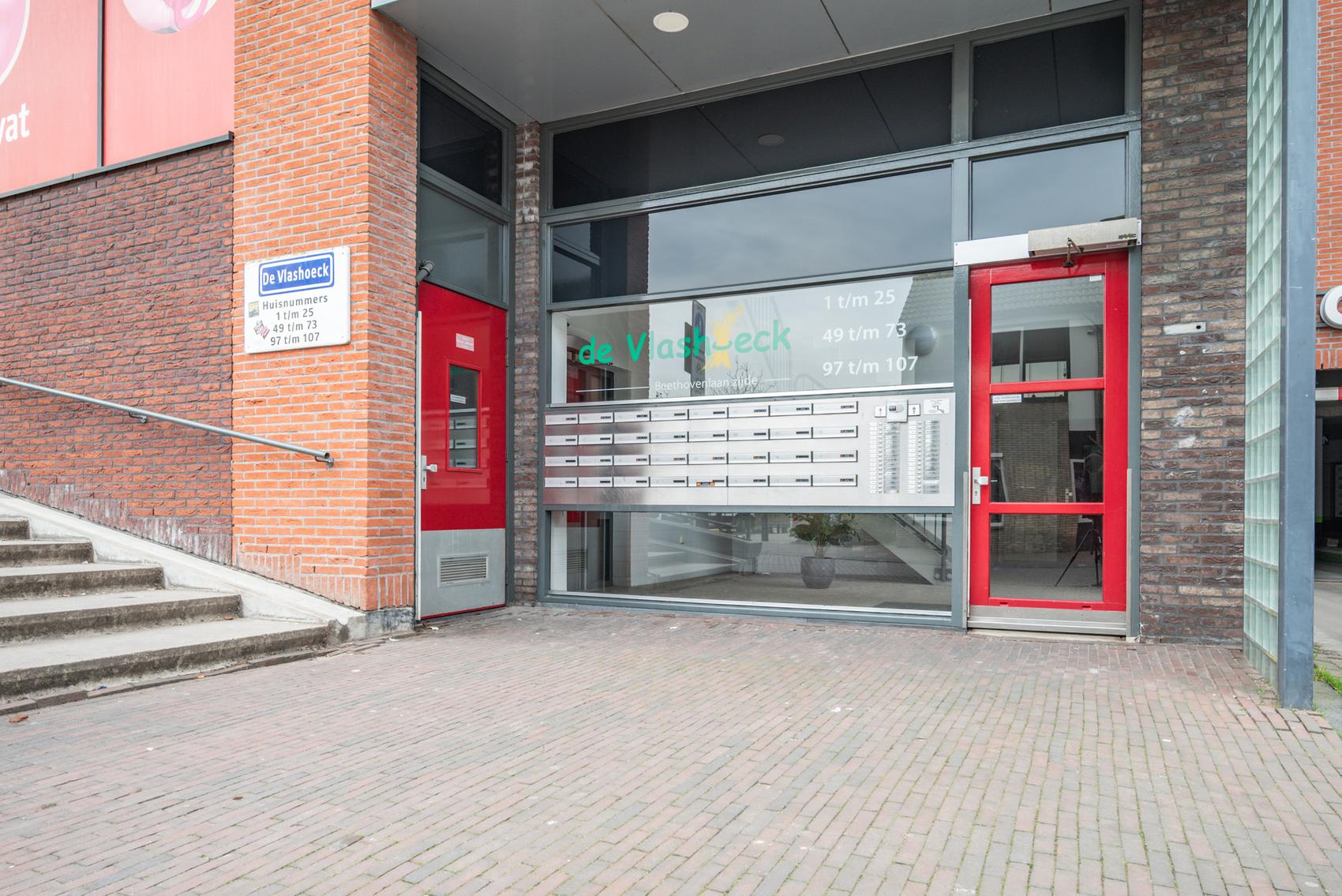 In de Vlashoeck, in het centrum van Bergschenhoek, kunt u genieten van rust, ruimte en comfort. Vanuit de ruime woonkamer heeft u uitzicht over het dorp, de Rottemeren en een glimp van de Rotterdamse skyline. De lift of trap leidt u naar de winkels en uw eigen parkeerplaats in de afgesloten garage. De woning heeft een hal met toilet, een inpandige berging en een lichte living met een schuifpui naar het balkon op het zuidoosten, uitgerust met elektrische zonneschermen. De open keuken is voorzien van moderne apparatuur en er zijn twee slaapkamers met schuifkastenwanden. De badkamer heeft een wastafel en inloopdouche. Dit appartement, met een woonoppervlakte van 96 m² en energielabel A, is fraai onderhouden en klaar voor bewoning.