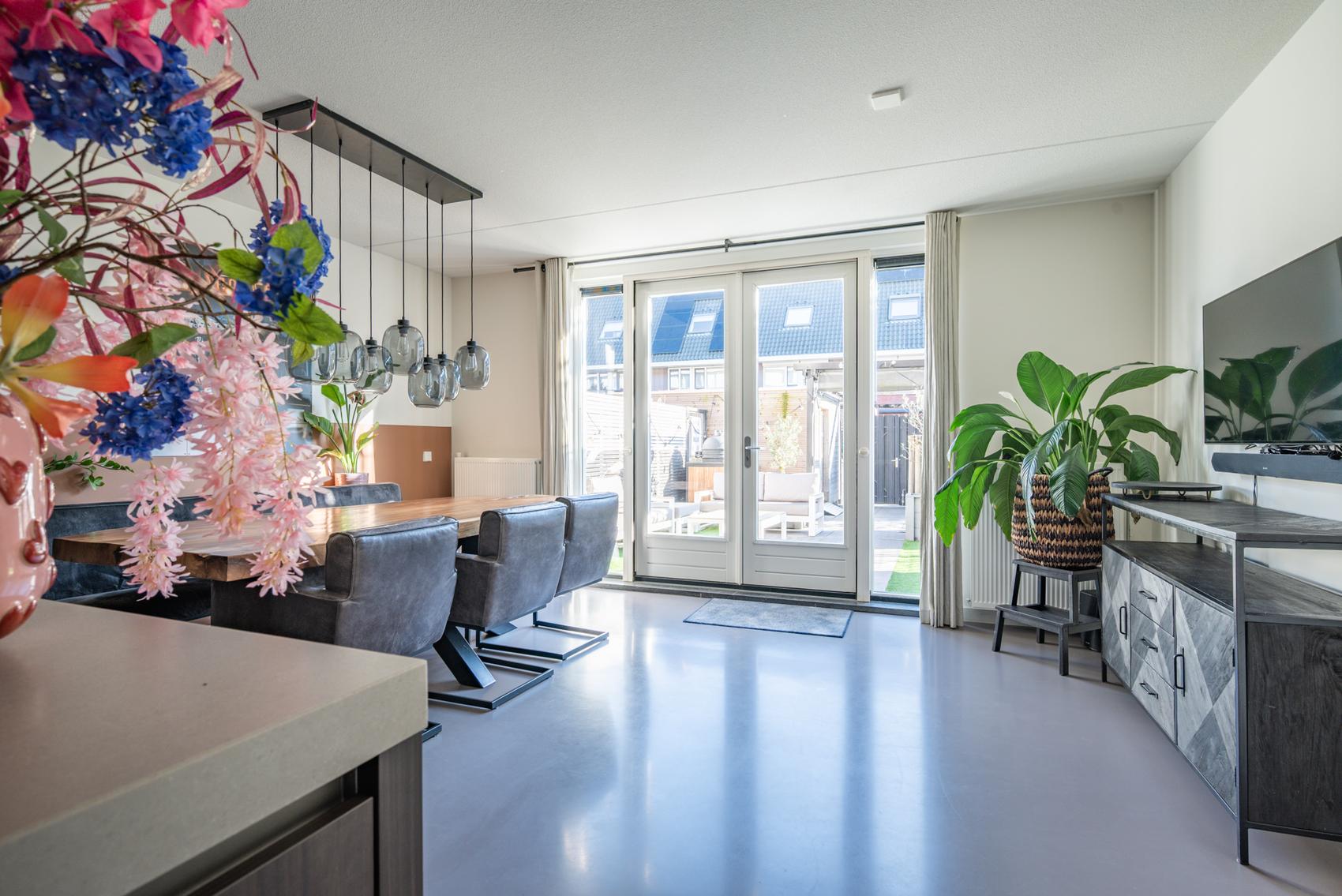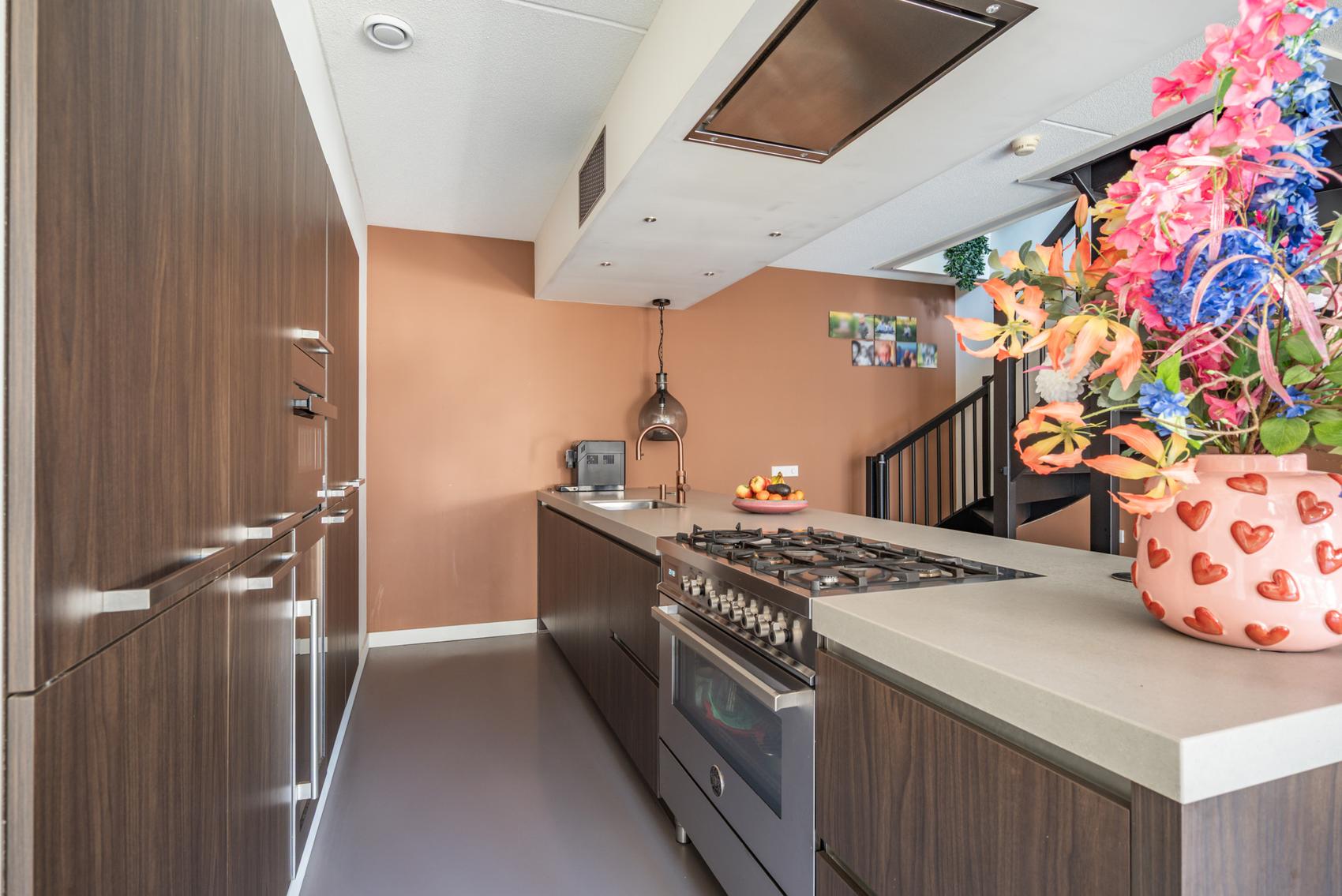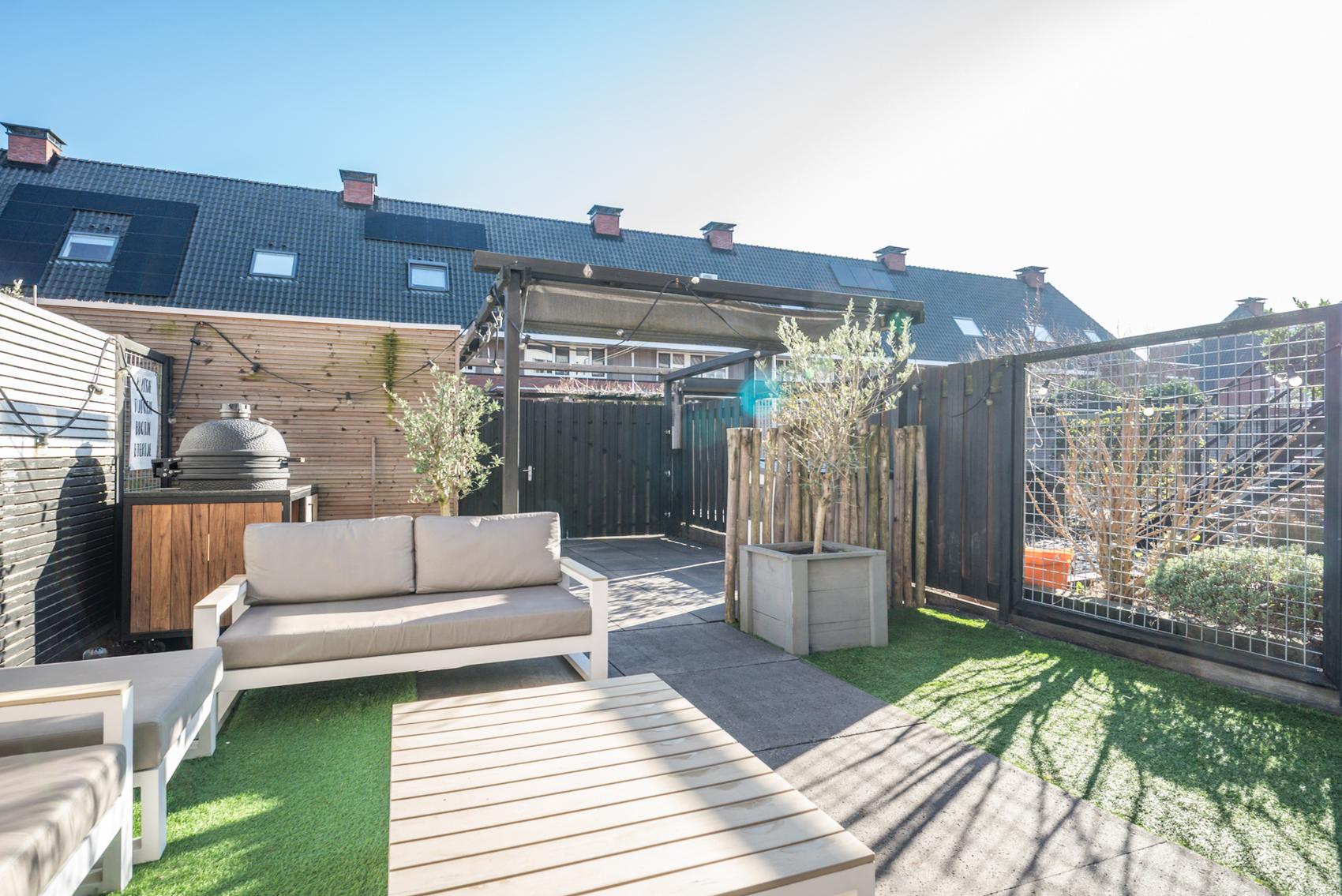 Deze sfeervolle eengezinswoning biedt een instapklare woonervaring met veel comfort en ruimte. Op de begane grond vind je een royale woonkeuken, voorzien van moderne apparatuur zoals een 6 pits gaskookplaat en een wijnklimaatkast. De dubbele openslaande deuren geven toegang tot de achtertuin, perfect voor zomeravonden. De sfeervolle living heeft een cinewall en een Frans balkon, met een trendy glazen wand naar de trap. Op de eerste verdieping zijn er twee ruime slaapkamers, met een moderne badkamer inclusief inloopdouche en sunshower. De vierde verdieping heeft twee slaapkamers met dakramen en een wasruimte. Bij de woning hoort een eigen parkeerplaats en er zijn 14 zonnepanelen aanwezig. De woning is gelegen in een kindvriendelijke wijk, vlakbij het Annie M.G. Schmidtpark.