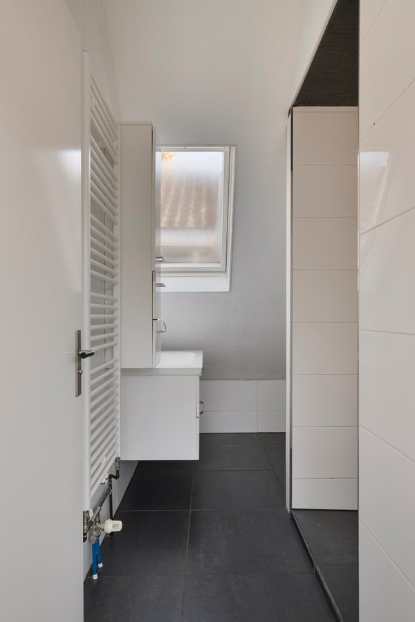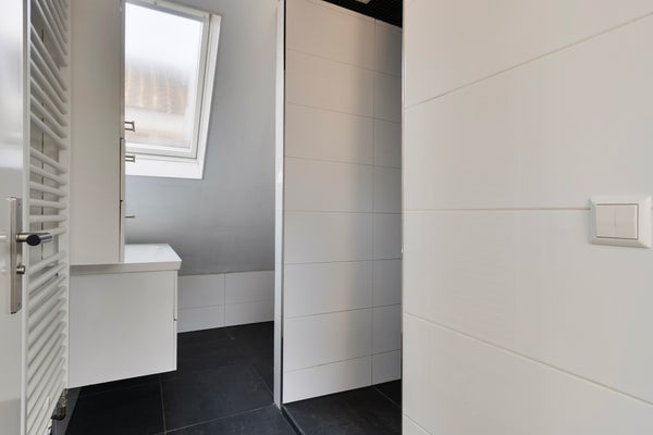 Mooie badkamer voorzien van inloopdouche, wastafelmeubel, 2de toilet, handdoekradiator en vloerverwarming.