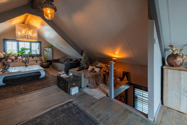 Op de eerste verdieping zijn er vier slaapkamers, waaronder twee mastersuites, plus een grote luxe badkamer. De bovenste verdieping is uitgevoerd als een charmante loft met uitzicht over de skyline van Rotterdam. De tuin is een oase van rust met 193 m2, volledig aangelegd en met een automatisch onderhoudssysteem. Er zijn diverse parkeerfaciliteiten op eigen terrein. De villa is energiezuinig en onderhoudsarm, ideaal voor een gezin.