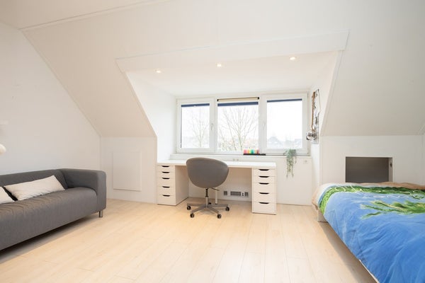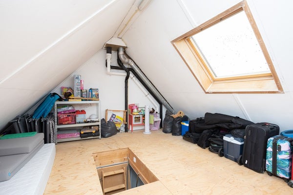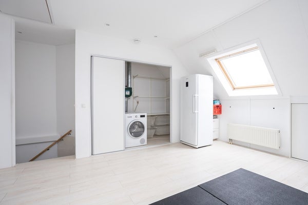 Wat een fantastische verdieping is dit. Oorspronkelijk volledig open, nu slim ingedeeld met een vliering, een kunststof dakkapel aan de voorzijde met als resultaat een royale, bijzonder lichte slaapkamer. Aan de achterzijde bevindt zich een zeer ruime voorzolder met de opstelling voor wasmachine, droger en de cv-combiketel (Atag, 2016), netjes weggewerkt achter praktische schuifdeuren. Deze ruimte biedt volop mogelijkheden om eenvoudig een extra slaapkamer te realiseren. Tot slot is er nog een ruime vliering, bereikbaar via een vlizotrap. Dankzij het dakraam is ook hier prettig daglicht aanwezig: de ideale plek voor het opbergen van spullen die u niet dagelijks nodig heeft.