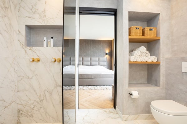 Dit is echt de bonus van de woning. Een prachtige verdieping met 2 slaapkamers en een badkamer. De kamers zijn ruim van opzet. Vanuit de master bedroom aan de voorzijde heeft u toegang tot een royale walkin closet en de badkamer. De badkamer is bijzonder fraai afgewerkt en is voorzien van een dubbele douche, dubbele wastafel en een toilet.