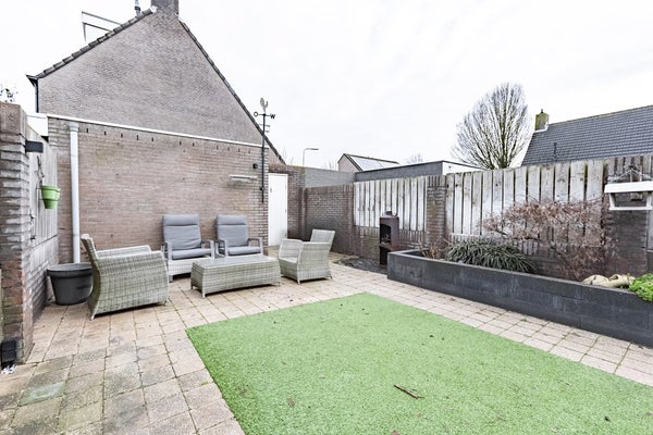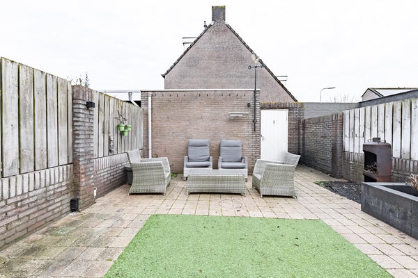 De onderhoudsvriendelijke achtertuin is gelegen op het noordoosten en biedt veel privacy doordat er geen directe inkijk van achterburen is. Je geniet hier van de zon, zonder dat het in de zomer te warm wordt – een ideale combinatie van comfort en rust. De fijne achterom en de vrijstaande stenen berging maken het geheel af.