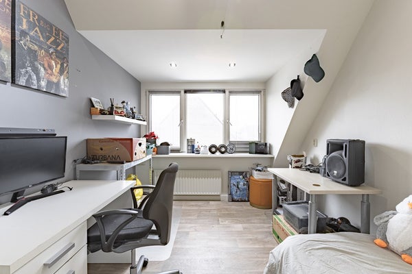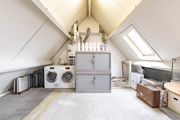 Via een vaste trap bereik je de ruime open zolderverdieping. Hier is eenvoudig een volwaardige vierde slaapkamer te realiseren. Tevens bevinden zich hier de cv-installatie en de aansluitingen voor de wasapparatuur. Dankzij de grote dakramen is ook deze verdieping heerlijk licht.