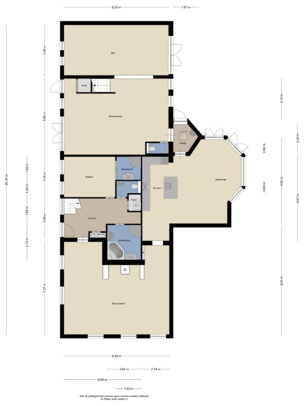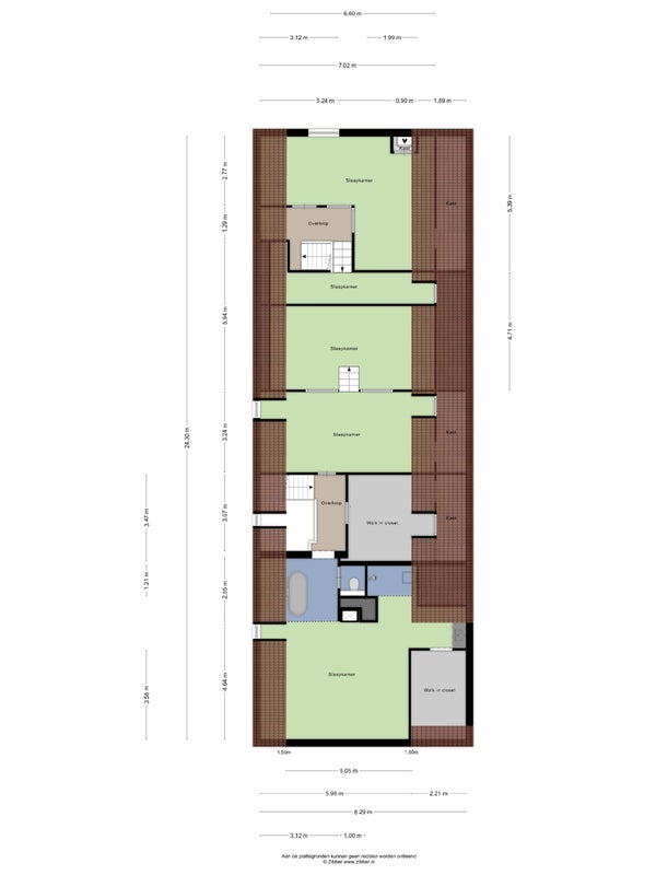 - De tussenwoning heeft een woonoppervlakte van 463 m² en beschikt over 9 kamers, waarvan 7 slaapkamers;