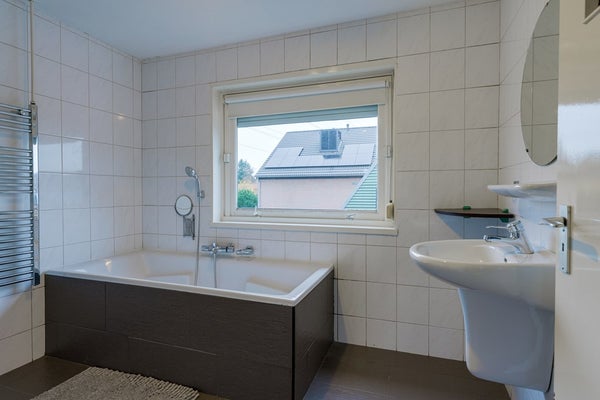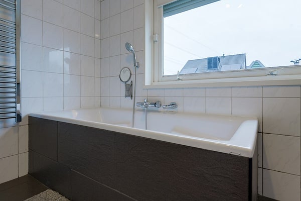 Via de trap vanuit de entree kom je op de overloop. Vanaf hier heb je toegang tot twee slaapkamers, ideaal als master bedroom en bijvoorbeeld een werk-/hobbykamer. Ook bevindt zich op deze verdieping de ruime badkamer, voorzien van een douche, ligbad, vloerverwarming en een wastafel.