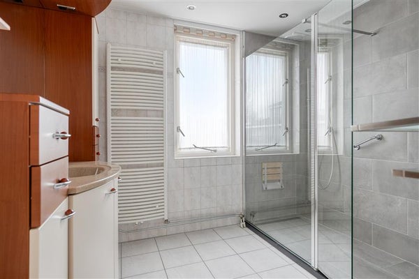 Op de eerste verdieping bevinden zich twee ruime slaapkamers, waarvan één eenvoudig is terug te brengen naar de oorspronkelijke indeling met drie slaapkamers. De badkamer is compleet uitgevoerd met inloopdouche, wastafelmeubel en een tweede toilet.
