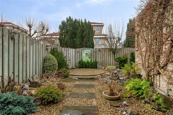 De achtertuin is verzorgd aangelegd met meerdere terrassen, beplanting en sierbestrating en biedt veel privacy.
