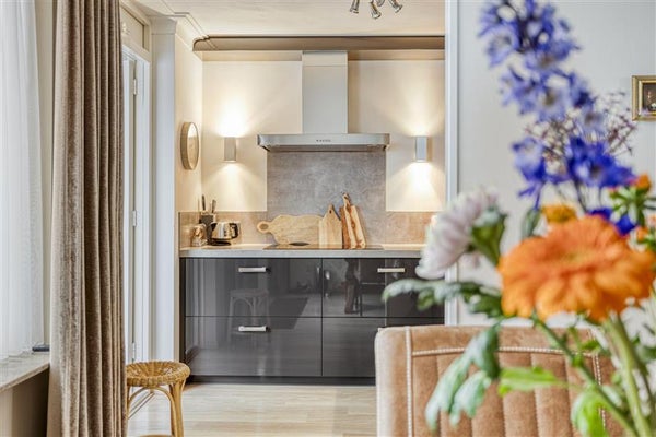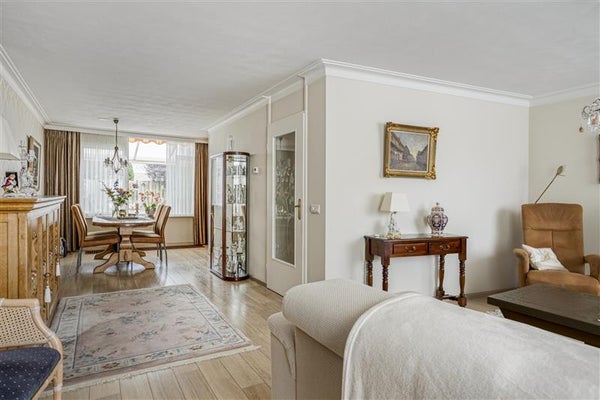 De L-vormige woonkamer is prettig licht en voelt ruim aan dankzij de grote raampartijen. De afwerking is verzorgd en de indeling praktisch, met voldoende ruimte voor een comfortabele zithoek en een royale eettafel. Aan de achterzijde bevindt zich de open keuken in hoekopstelling, voorzien van diverse inbouwapparatuur en met direct contact met de woonkamer en de tuin.