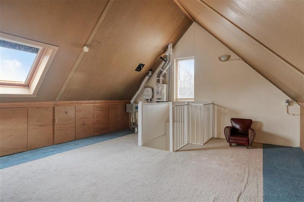 De tweede verdieping beschikt over een volwaardige derde slaapkamer met dakraam en extra bergruimte. Tevens bevinden zich hier de cv-installatie en de omvormer van de zonnepanelen. Deze verdieping is flexibel in te delen en uitstekend geschikt als extra werk-, logeer- of hobbyruimte.