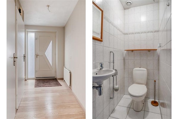 Bij aankomst valt direct de rustige ligging en de ruime opzet op. De woning beschikt over een eigen oprit met carport en parkeergelegenheid voor meerdere auto’s op eigen terrein. Via de overdekte entree kom je in de hal met meterkast, toiletruimte en toegang tot de woonkamer.