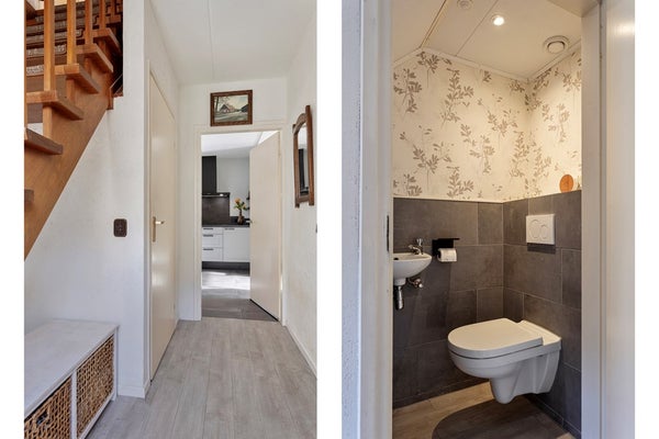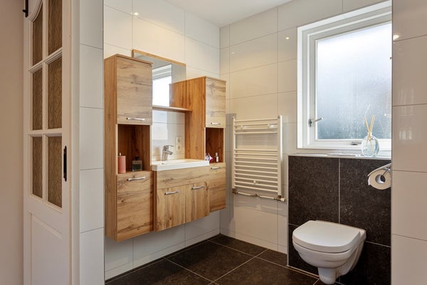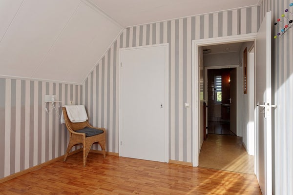 Via de vaste trap bereik je de overloop op de eerste verdieping. Vanaf hier is er toegang tot drie comfortabele slaapkamers, allen voorzien van vaste kasten. Daarnaast bevindt zich op deze verdieping een ruime badkamer, compleet en praktisch ingericht. Een fijne verdieping met volop ruimte voor het hele gezin.