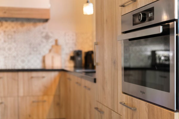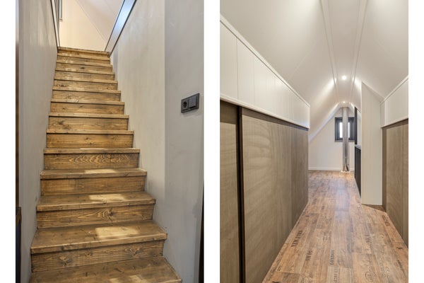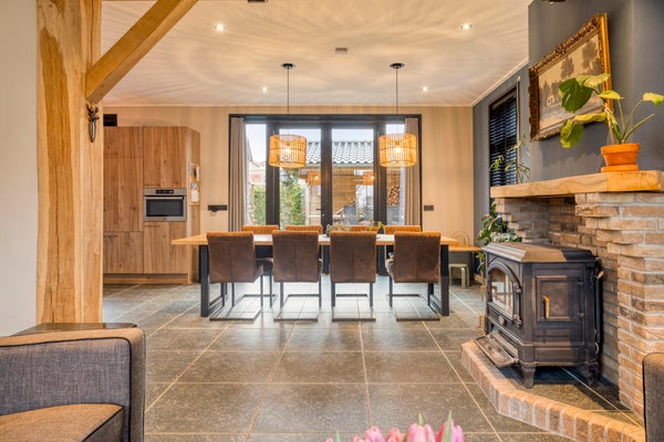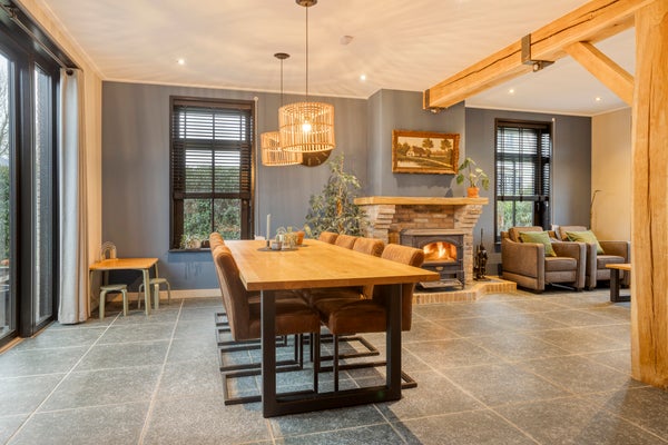 De begane grond heeft een lichte woonkamer met een houtkachel en openslaande tuindeuren. De luxe open keuken is voorzien van moderne apparatuur en een praktische bijkeuken met een wasruimte. De eerste verdieping heeft vier comfortabele slaapkamers en een complete badkamer met een inloopdouche. Op de tweede verdieping bevindt zich de vijfde slaapkamer, ook geschikt als hobbyruimte.