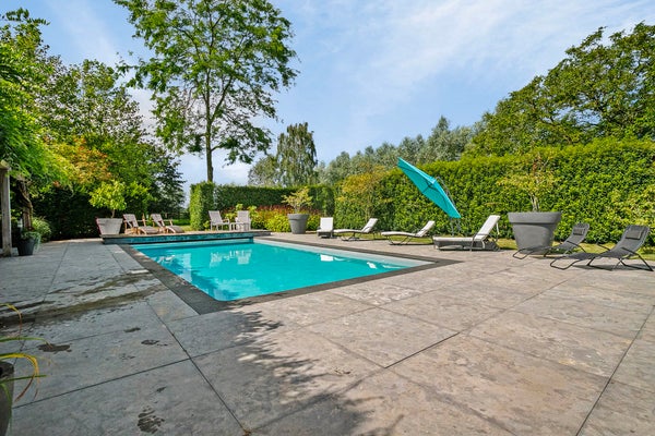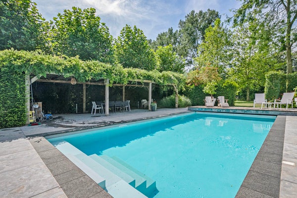 De prachtig aangelegde tuinen herbergen een verwarmd zwembad, een ludieke hobbydierenweide en een carport voor drie auto’s. In het bijgebouw bevindt zich een wellnessruimte met sauna en jacuzzi. De woning biedt 392 m² aan woonoppervlakte, verdeeld over een royale woonkamer, eetkamer en een luxe keuken met unieke apparatuur. Er zijn vier slaapkamers en twee moderne badkamers, allemaal met airconditioning. De buitenruimte en nabijheid van de natuur maken dit huis tot een waar paradijs.