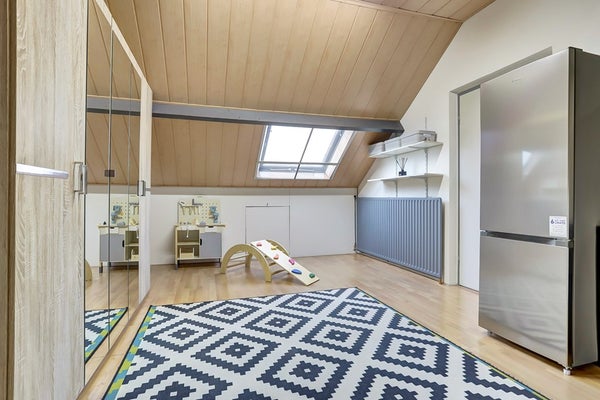 De achterzolder is verrassend ruim en veelzijdig. Deze kamer biedt voldoende ruimte om er bijvoorbeeld een vierde slaapkamer van te maken maar is ook perfect als hobbyruimte, kantoor of speelkamer. Onder de dakschuinte is handige bergruimte gecreëerd en het grote dakraam zorgt voor veel licht en een prettige sfeer. Zo kan deze zolder helemaal worden ingericht naar jouw wensen.