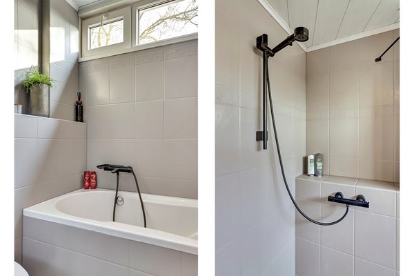 De badkamer is van alle gemakken voorzien: een inloopdouche, een heerlijk ligbad, hangcloset, wastafel met meubel én een designradiator. De zwarte accenten van de kranen geven de ruimte een moderne en strakke uitstraling. Ook qua ventilatie is alles tiptop geregeld: naast natuurlijke ventilatie zorgt een mechanisch systeem voor een frisse en comfortabele badkamer, elke dag opnieuw.