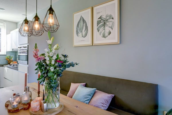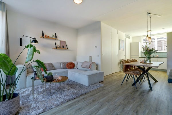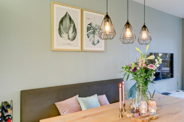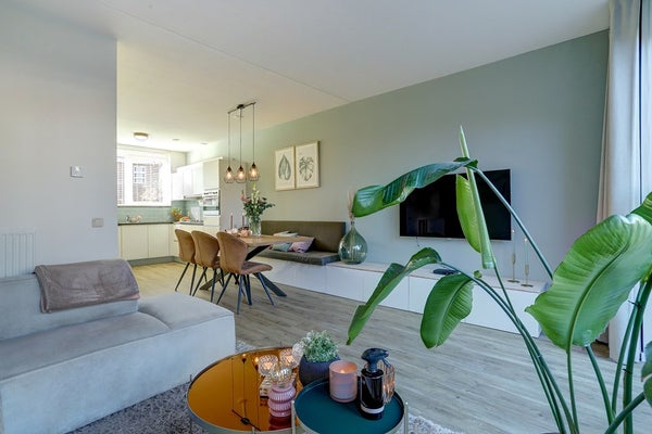 Doorlopend vanuit de keuken kom je in de woonkamer. Allereerst de gezellige eethoek, een plek waar lange avonden met vrienden en familie vanzelf ontstaan. Hier is ruimte voor een royale tafel perfect voor uitgebreide diners en spelletjesavonden.