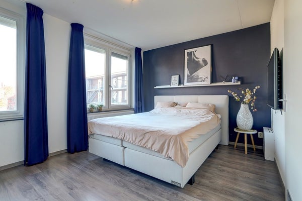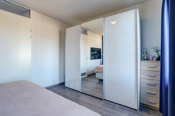 De tweede kamer is ook royaal van opzet en biedt volop mogelijkheden. Hier kun je niet alleen een bed en kledingkast kwijt, maar ook een bureau voor werk of studie.