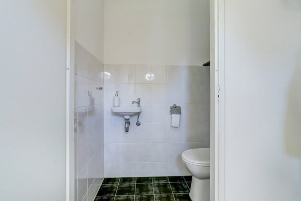 Vanuit de hal heb je toegang tot de meterkast en het toilet welke halfhoog betegeld is en voorzien van een hangcloset en een fonteintje. En natuurlijk vind je hier ook de doorloop naar de keuken. Kom snel verder!
