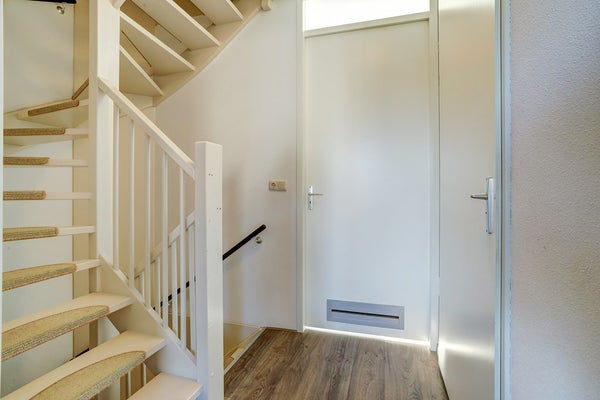Via een afgesloten deur in de woonkamer bereik je de trap naar de eerste verdieping.