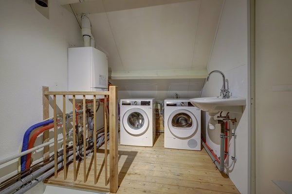 De achterzolder is een fijne, open ruimte met extra opbergruimte onder de schuine kanten. Dankzij het dakraam geniet je hier van voldoende daglicht en ventilatie. Ideaal als extra slaapkamer, hobbykamer of een comfortabele werkplek.