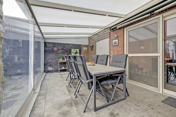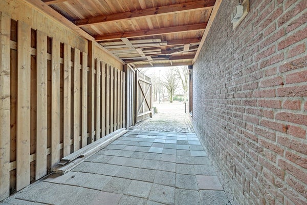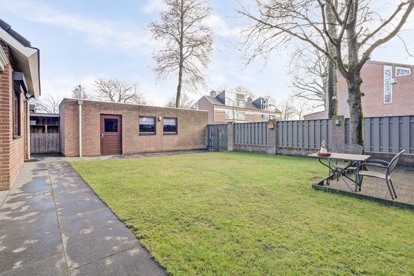 Aan de voorzijde van de woning ligt een verzorgde voortuin die in 2023 opnieuw is ingericht. Hier vind je siergrind, diverse beplanting en een stijlvol hekwerk dat zorgt voor een nette uitstraling. Zelfs een kleine moestuin maakt deel uit van deze entree, ideaal voor wie van eigen kruiden of groenten houdt. De tuin vraagt weinig onderhoud en via het looppad bereik je zowel de voordeur als de achterom. Aan de rechterzijde van de woning vind je bovendien een extra oprit met afgesloten poort en een dichtgemaakte carport, ideaal voor het stallen van fietsen, tuinspullen of zelfs een caravan.