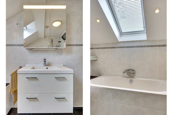 De badkamer is een fijne en royale ruimte waar je de dag heerlijk kunt beginnen. Je vind hier een ruime douche met glazen wand, een hangcloset, een diep ligbad waar je kunt ontspannen na een lange dag en een stijlvol badmeubel met wastafel. Het dakraam zorgt ervoor dat je hier volop daglicht én ventilatie hebt. Als kers op de taart beschikt de badkamer ook nog over elektrische vloerverwarming, zodat het hier altijd aangenaam warm blijft.