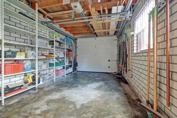 Achter in de tuin staat een zeer ruime garage wat een extra pluspunt is van de woning. De garage is voorzien van een elektrische garagedeur (vervangen in 2022), en hardhouten kozijnen. Hier heb je volop plek voor opslag, hobbyruimte of gewoon om de auto binnen te zetten.