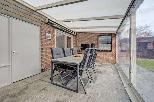 De royale raampartijen aan de voor- en zijkant zorgen dan ook voor volop daglicht en geven een vrij uitzicht over de weide omgeving. Via de schuifpui met hor loop je zo door naar de overkapping in de achtertuin, ideaal voor de eerste zonnestraaltje in de lente. De woonkamer heeft in 2021 een nette upgrade gehad en is voorzien van een moderne PVC-vloer (2021), strakke stucwerk wanden en het plafond is voorzien van sierlijsten en inbouwspots.