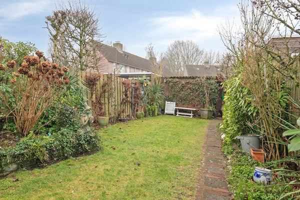 De achtertuin biedt volop privacy, is ongeveer 20 meter diep en ideaal georiënteerd op het zuidwesten. Het achterdakvlak van de woning en garage zijn ideaal georiënteerd voor het eventueel plaatsen van zonnepanelen. Er is een achterom en een houtopslag achter in de tuin tegen de stenen schutting. De achtertuin beidt volop extra bebouwingsmogelijkheden.