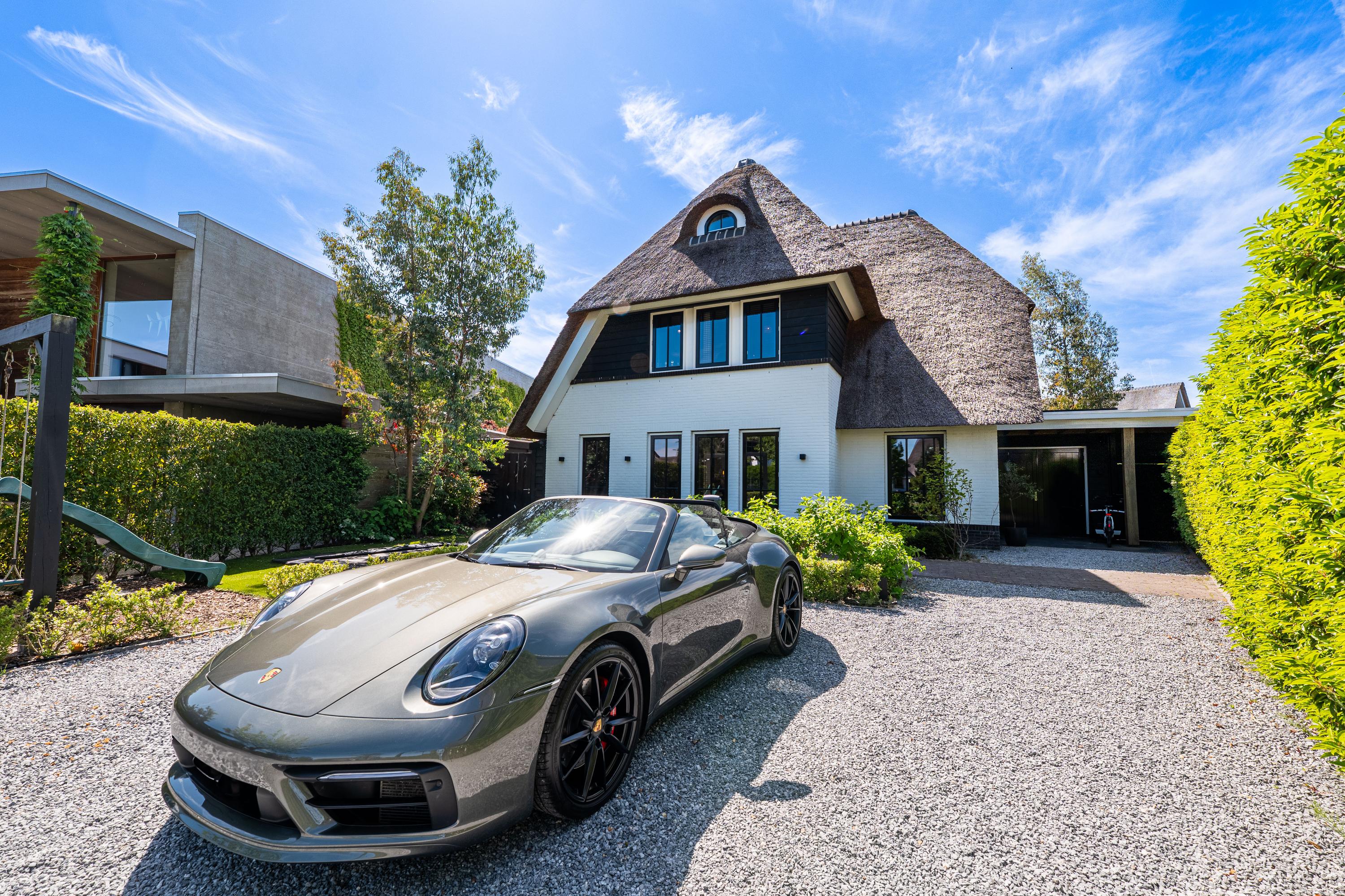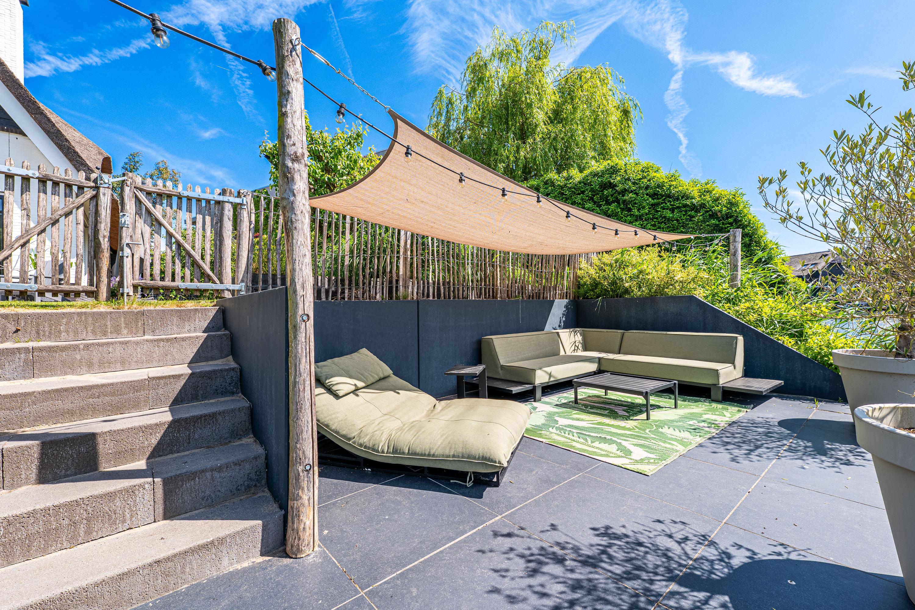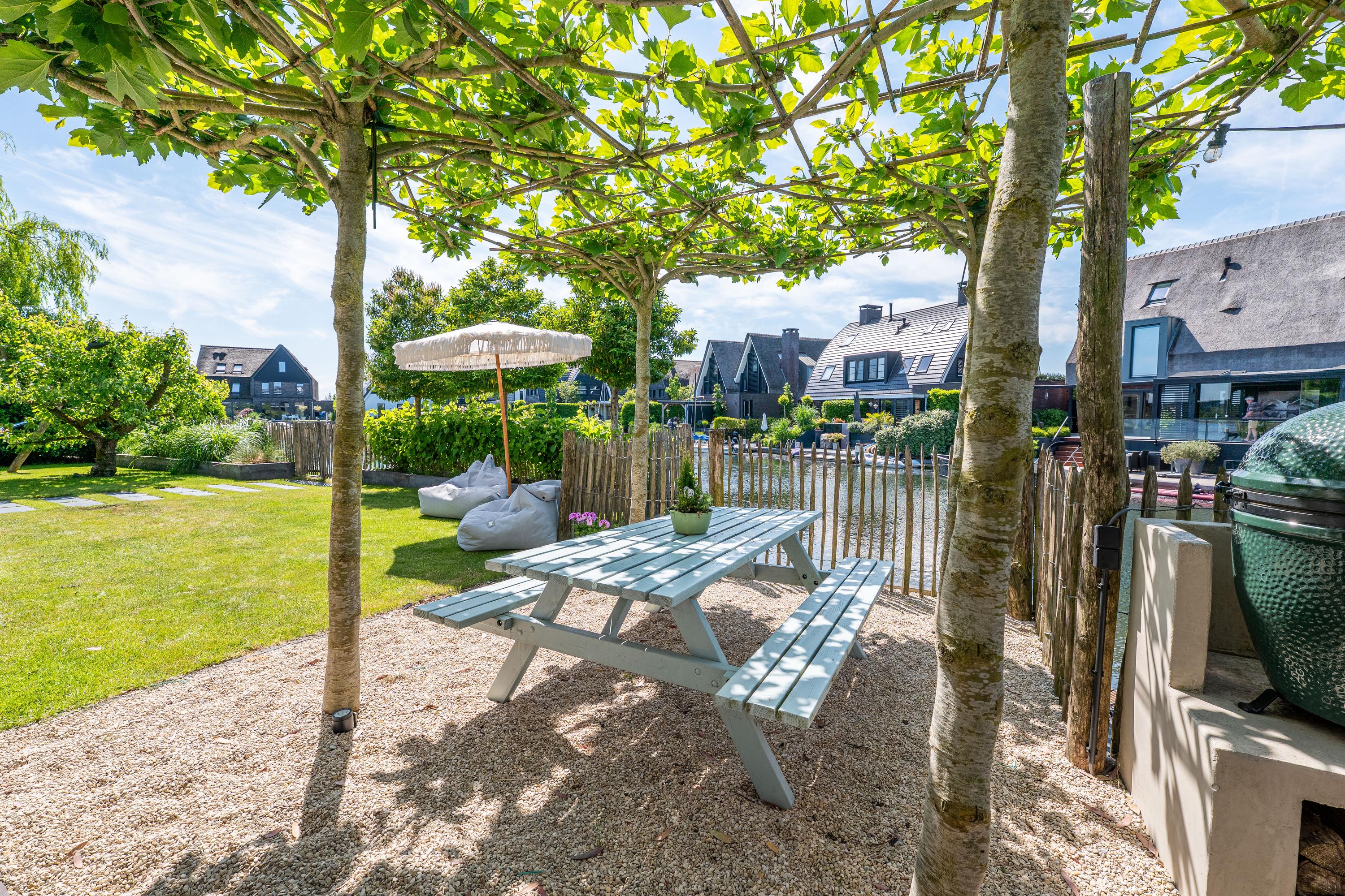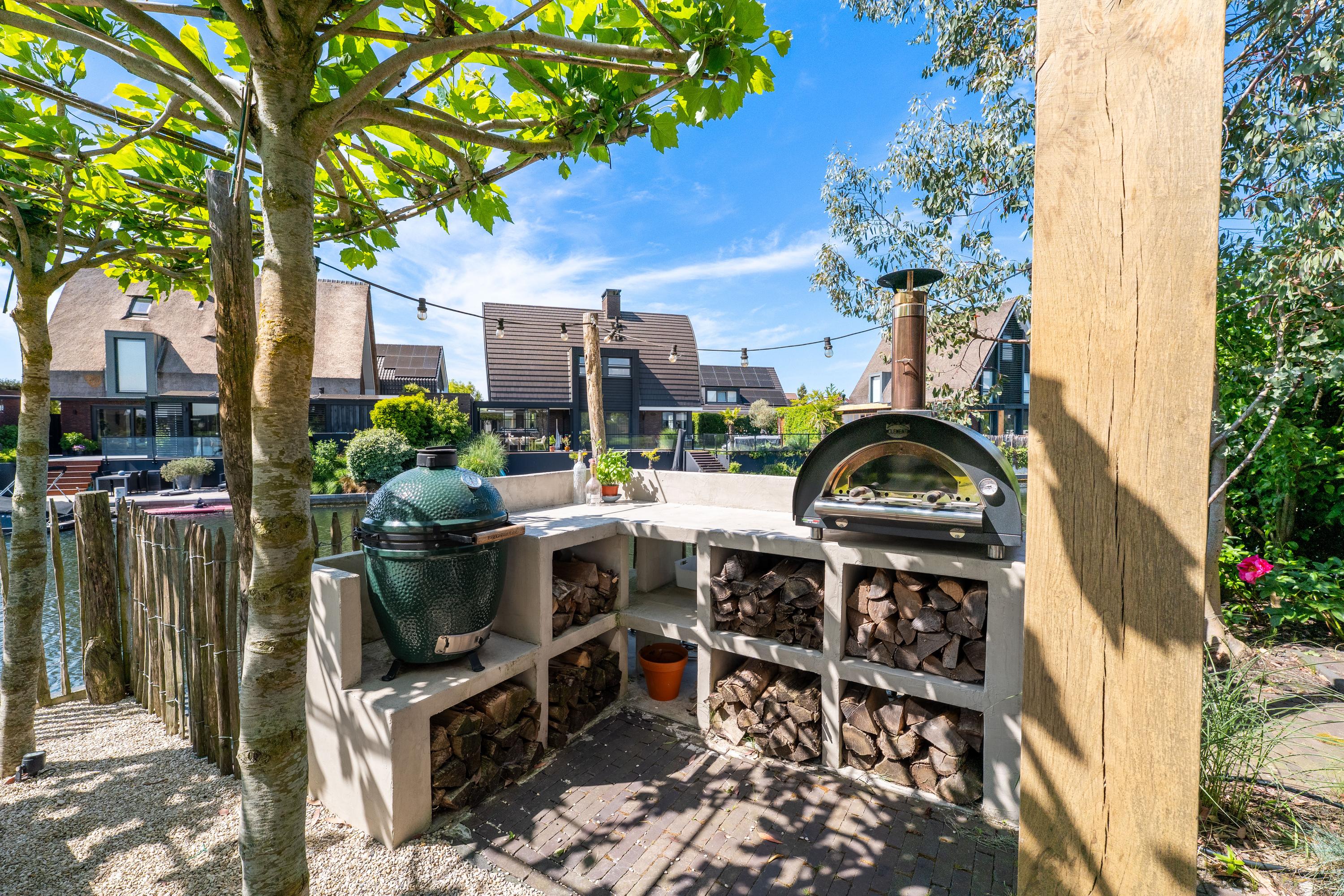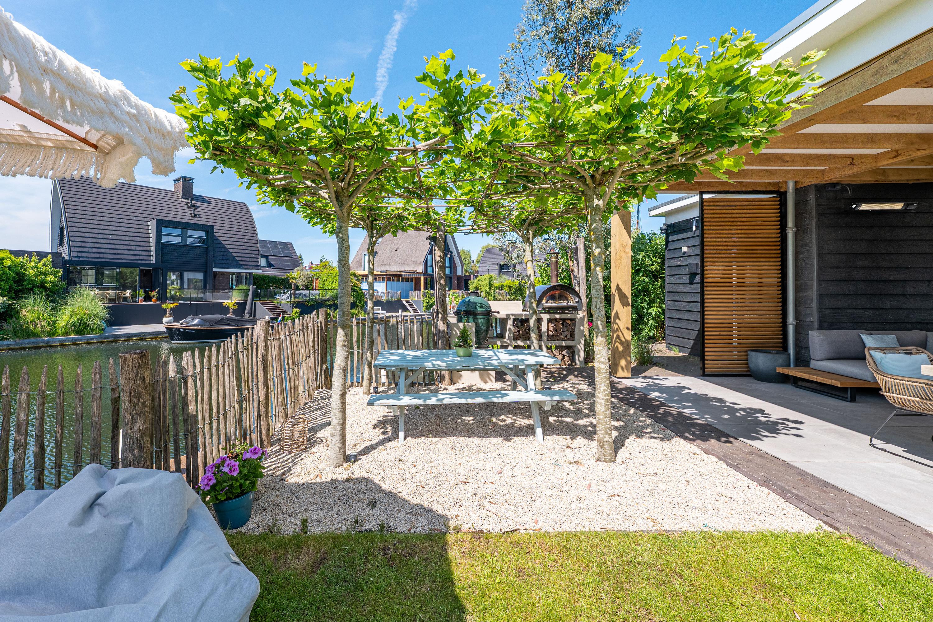 Deze schitterende rietgedekte villa in Blaricum, aan het water, biedt een uniek gevoel van vakantie. De woning beschikt over een ruime oprit en veranda en is gelegen op een eiland met eigen aanlegplaatsen aan recreatief water. Binnen komt u via de overdekte entree in de hal die leidt naar de bijkeuken en een voormalige garage. De ruime woonkamer met open haard gaat over in de eetkeuken, compleet met moderne apparatuur en openslaande deuren naar het terras. De eerste verdieping heeft drie slaapkamers en een luxe badkamer. Op de tweede verdieping zijn nog twee kamers. De woning is volledig geïsoleerd, met vloerverwarming en koeling. De tuin rondom is verzorgd en biedt parkeermogelijkheid voor drie auto’s. Dit is een unieke kans om direct aan vrij vaarwater te wonen.