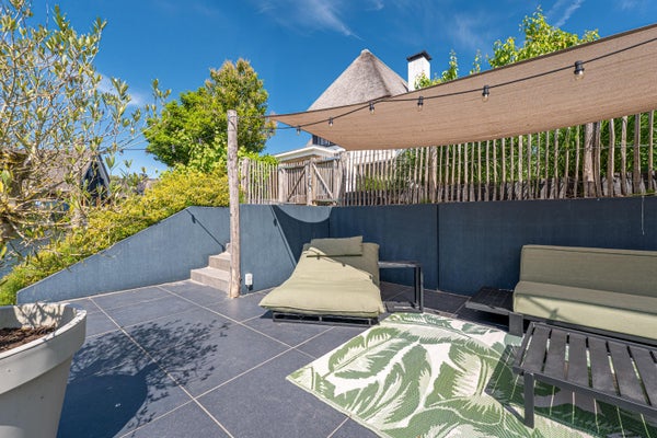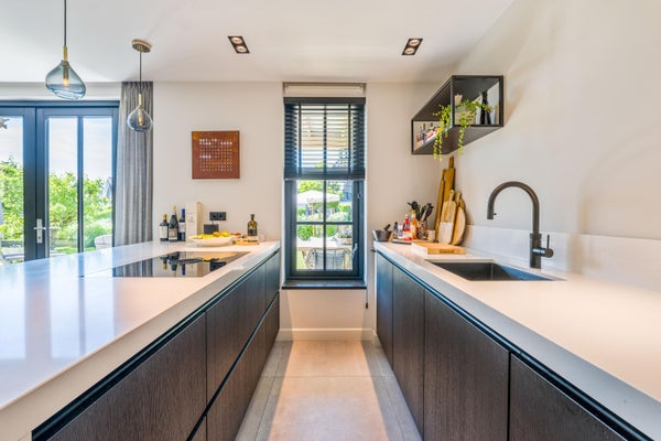 Stap binnen in het vakantiegevoel van deze prachtige rietgedekte villa op een eiland in Blaricum, met directe toegang tot het (vaar)water. De villa heeft een ruime oprit en een veranda, perfect voor ontspanning. Via de overdekte entree kom je in de hal, waar een garderobe, meterkast en vrijhangend toilet zijn. De bijkeuken biedt ruimte voor wasmachine- en droger aansluitingen. De woonkamer heeft een openhaard, die ook zichtbaar is vanuit de eetkeuken met openslaande deuren naar het terras. De woonkeuken is van alle gemakken voorzien. Op de eerste verdieping zijn drie slaapkamers, met de master suite met inloopkleedkamer en airconditioning. De tweede verdieping heeft nog twee kamers. De tuin rondom heeft parkeerruimte voor meerdere voertuigen, een houten berging en een aanlegplaats voor boten aan het water. Met energieklasse A+++ en vloerverwarming in de gehele woning, biedt deze villa comfort en luxe.