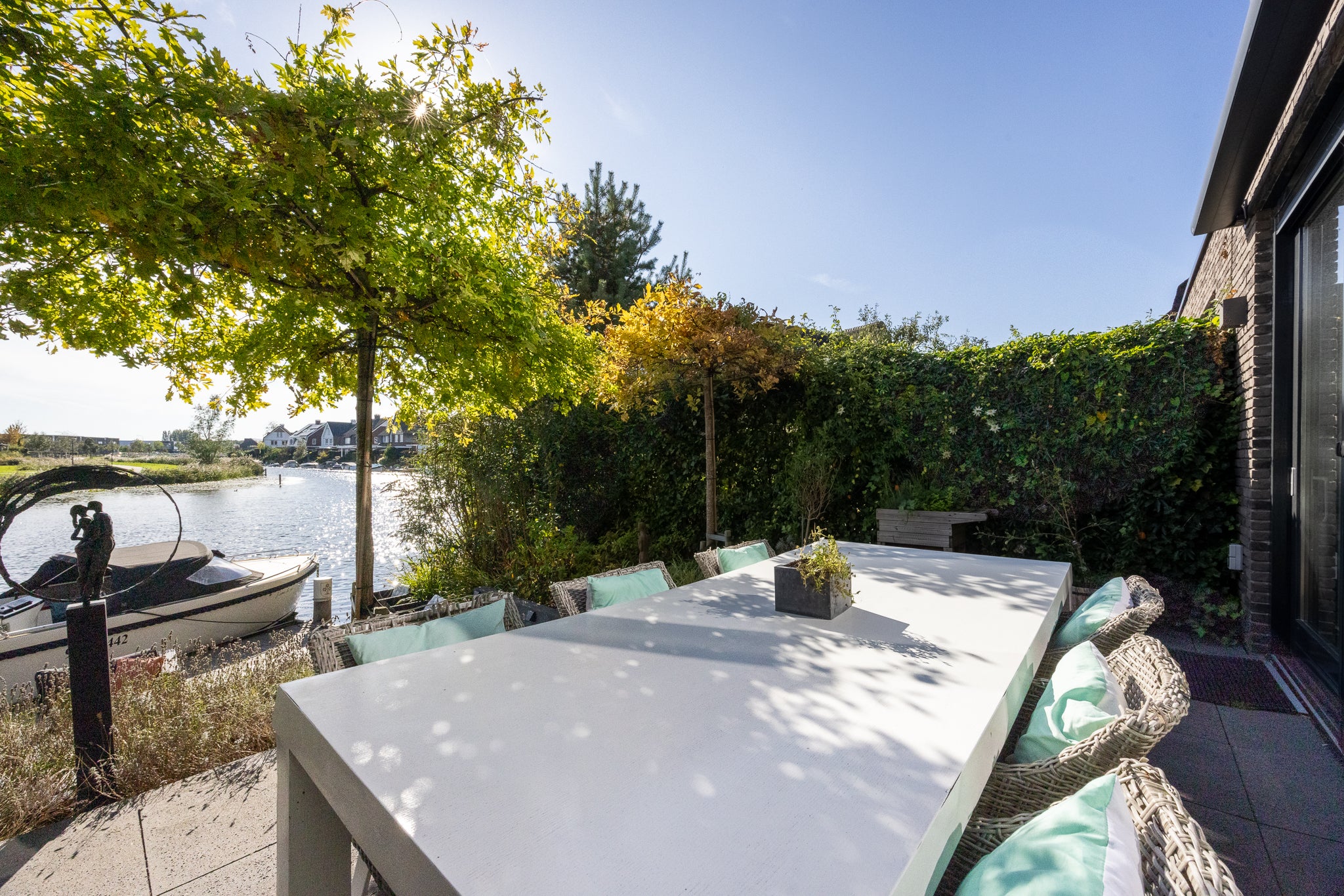 Welkom in deze moderne, uitgebouwde helft van een dubbele villa, gelegen aan de prachtige Meentstroom. Deze woning biedt het ultieme gevoel van vakantie, met een zonnige tuin, een luxe woonkeuken en een eigen aanlegplaats voor uw boot. Op de begane grond is er een hal, een ruime woonkeuken met eiland, en een lichte woonkamer met schuifpui naar de tuin. Boven vindt u drie slaapkamers, inclusief een master bedroom met inloopkast, en een complete badkamer. Op de tweede verdieping zijn nog twee ruime slaapkamers en een voorzolder. De tuin grenst aan het water en er is parkeergelegenheid voor meerdere auto’s met een garage. Deze villa is energiezuinig, met vloerverwarming, warmtepomp en 23 zonnepanelen. Gelegen in de groene Blaricummermeent, dichtbij natuur en stadse gemakken, is dit een unieke kans om aan het water te wonen!