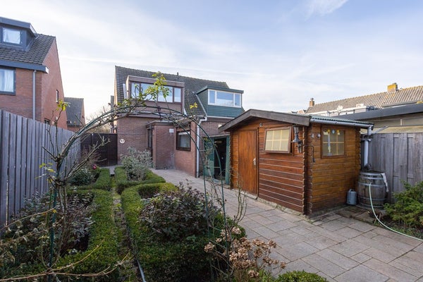 Wat is dit een heerlijke ruime tuin. Heel ruim van opzet en fijn dat er naast het tuinhuis een houten overkapping aanwezig is.