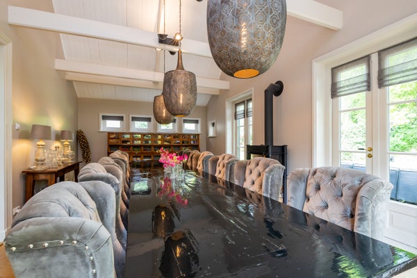 Villa Dennenhoek aan de Parkweg 1 in Bloemendaal is het oudste bewaard gebleven woonhuis in de villawijk, ontworpen door architect Karel Muller in 1899. De villa combineert chaletstijl en Engelse landhuisstijl en is gelegen op een prachtig perceel van 3.527 m². De indeling omvat een ruime centrale hal, een woonkamer, studeerkamer, poolkamer en een grote woonkeuken met eetkamer. De eerste verdieping beschikt over zes slaapkamers en drie badkamers, terwijl de tweede verdieping vier slaapkamers en twee badkamers herbergt. De woning is voorzien van zonnepanelen en dubbel glas. De tuin rondom is aangelegd onder architectuur, en er is een dubbele garage voor twee auto’s. Deze villa biedt een unieke gelegenheid in een rustgevende omgeving, dichtbij natuur en voorzieningen.