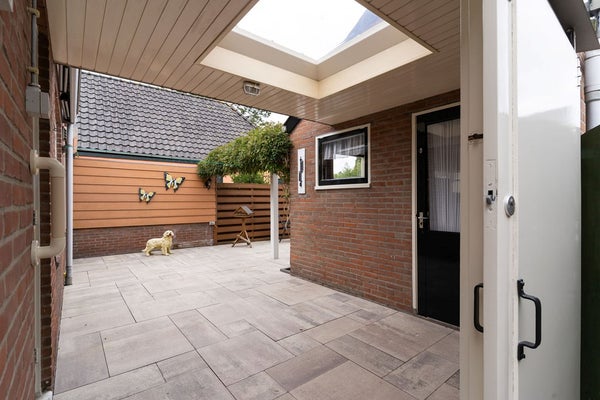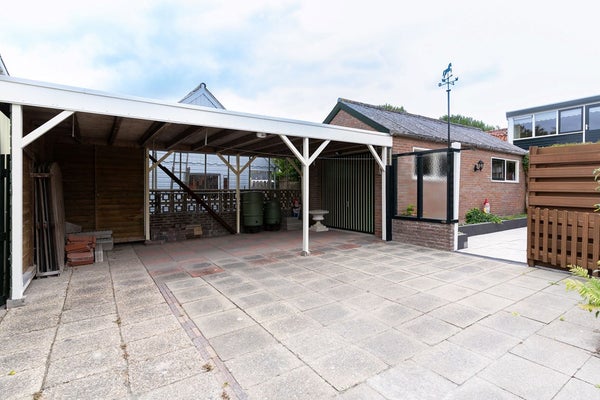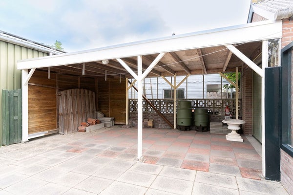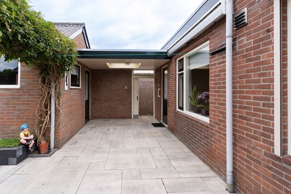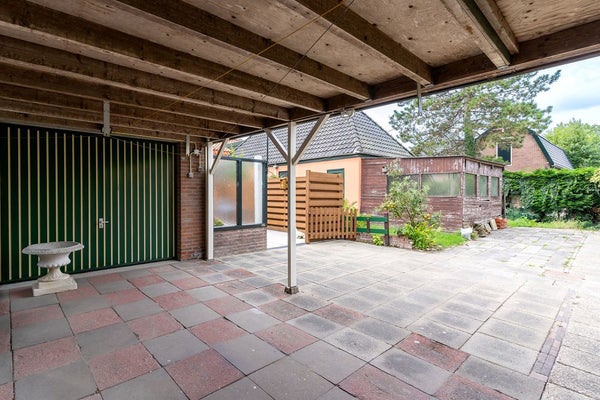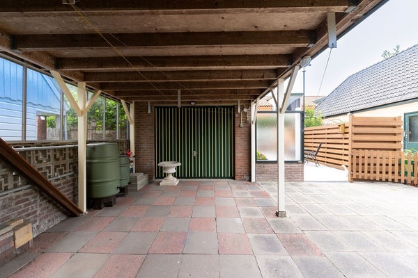 Een overdekte doorloop naar SCHUUR en afsluitbare poortdeur.