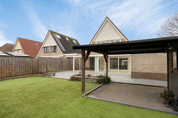 De onderhoudsvriendelijke tuin rondom de woning, beschikt aan de achterzijde over een terras, 2 overdekte terrassen en een houten berging. Voor de garage is een oprit met parkeergelegenheid aanwezig.