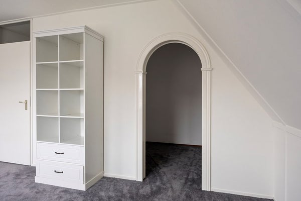 Overloop, trapopgang en 3 slaapkamers. De grootste slaapkamer, gelegen aan de achterzijde, is voorzien van een inloopkast. De tweede badkamer beschikt over een wastafel, toilet en een ligbad met douche.