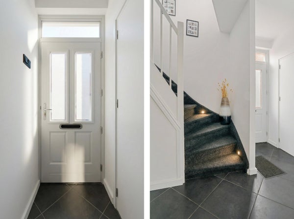 Bij binnenkomst betreedt u de hal, die toegang biedt tot de moderne meterkast, het toilet, woonkamer en vaste trap naar de eerste verdieping.