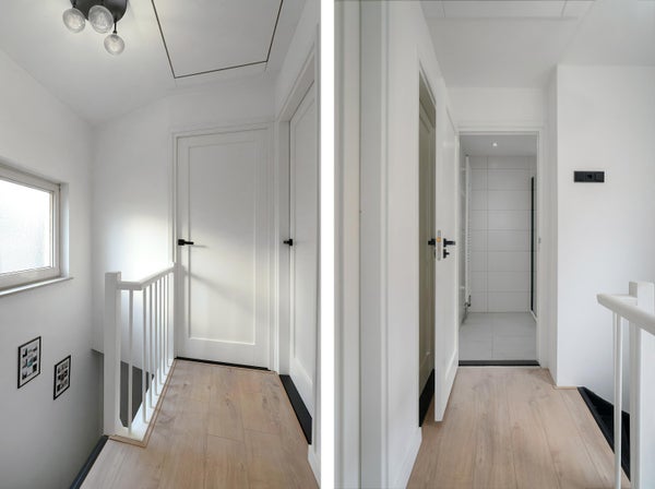 Vanuit de overloop betreedt u via een nieuwe vlizotrap de zolderruimte, waar de cv-ketel zich bevindt.