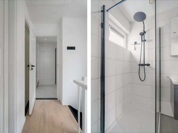 Op de eerste verdieping vindt u drie ruime slaapkamers, allen met laminaatvloer. De betegelde badkamer is voorzien van een douchecabine met regendouche en wastafel met meubel.
