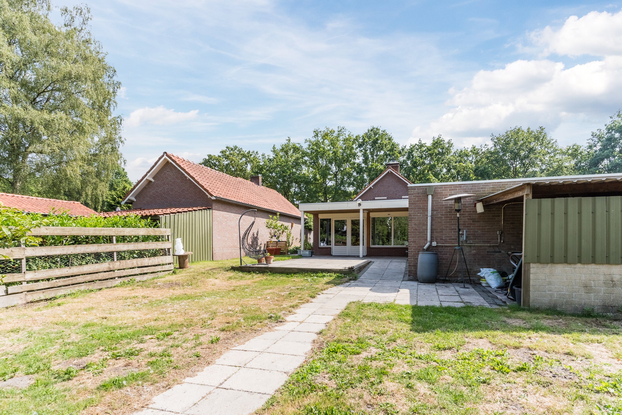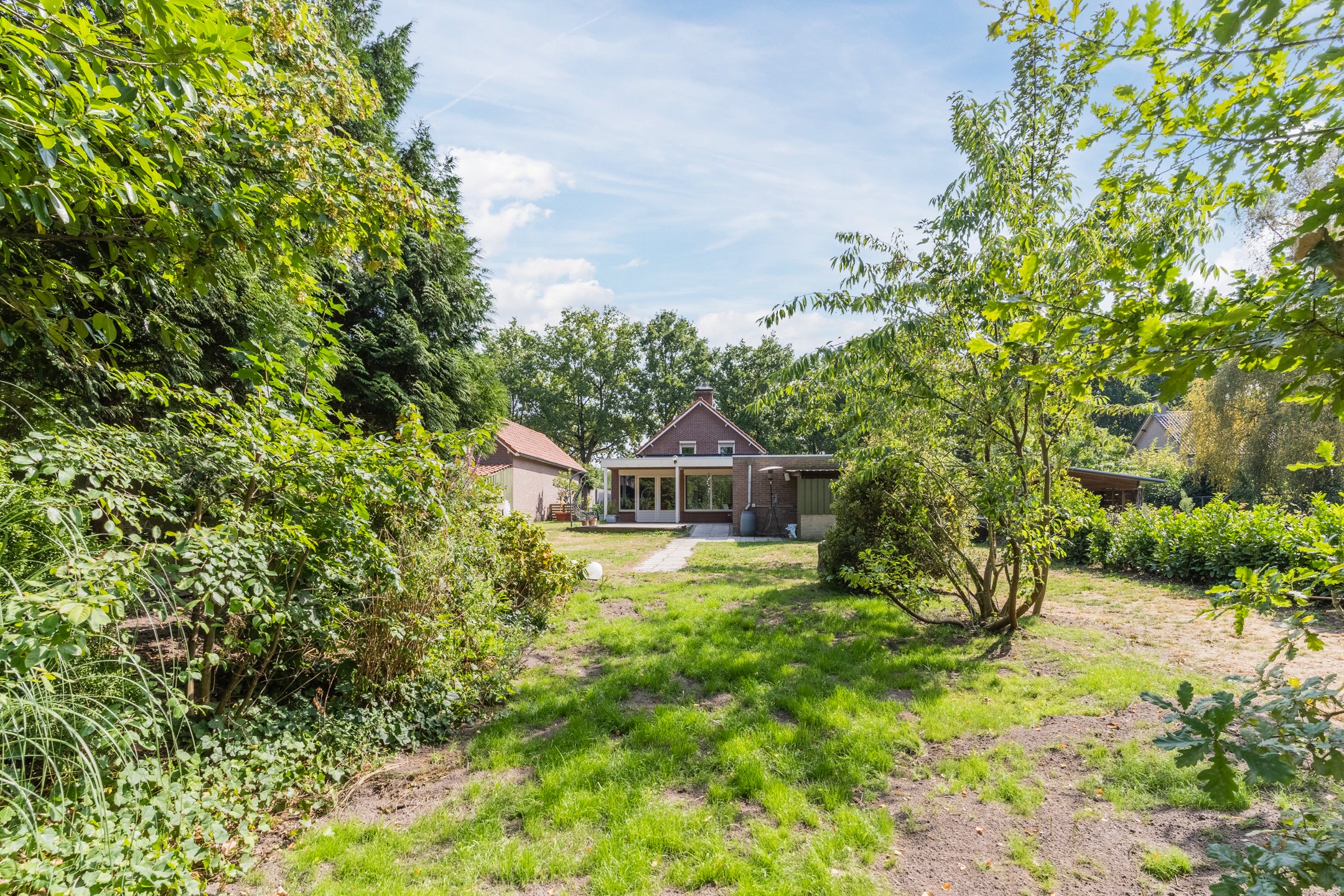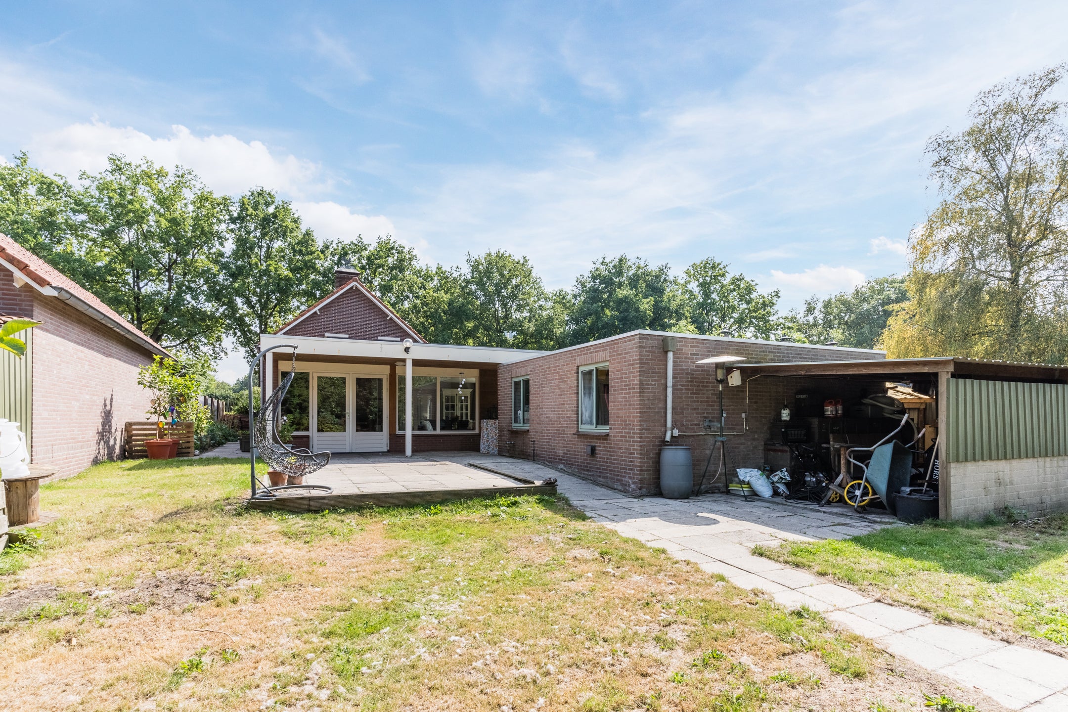 Deze woning biedt een uitstekende basis voor diegenen die hun woonwensen willen realiseren. Gelegen op een royaal perceel van 1.645 m², beschikt het over 173 m² woonoppervlakte en talloze mogelijkheden voor modernisering en verduurzaming. De woning heeft 5 kamers, waaronder 3 slaapkamers van respectievelijk circa 9½, 10½ en 12 m². Gemakken zoals een gelijkvloerse indeling, een royale bijkeuken, en een multifunctionele woonkamer met openslaande deuren naar het overdekt terras maken het tot een perfect thuis. De tuin rondom de woning nodigt uit tot buitenleven en biedt privacy. Met een vrijstaande garage, eigen oprit en de nabijheid van bossen is dit een unieke kans om uw droomwoning te creëren.