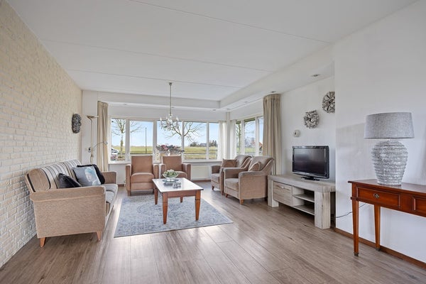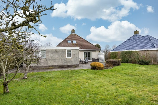 Entree, hal, meterkast, trapopgang en toilet. De ruime woonkamer heeft veel lichtinval door de grote raampartij bij de zithoek aan de voorzijde en een schuifpui aan de achterzijde naar het terras. Vanuit de woonkamer heeft u een prachtig landelijk uitzicht over de rondweg en weilanden. De gesloten keuken is voorzien van een keukenblok in hoekopstelling met inbouwapparatuur en veel kastruimte. De bijkeuken is bereikbaar vanuit de keuken en de garage. In de bijkeuken bevinden zich een rvs aanrechtblad met spoelbak, de witgoedaansluitingen, de cv-installatie en een deur naar de achtertuin. Vanuit de hal is er toegang naar de ruime slaapkamer met badkamer ensuite op de begane grond. Deze badkamer is voorzien van een douche, wastafel en een toilet. De ruime L-vormige garage heeft aan de voorzijde zowel een garagedeur als een loopdeur. Achterin de garage is een extra ruimte, zeer geschikt als hobbyruimte of bergruimte. Aan de voorzijde van de garage is een ruime oprit voor meerdere auto's. Rondom de woning bevindt zich een keurig onderhouden tuin, compleet met een achterom.